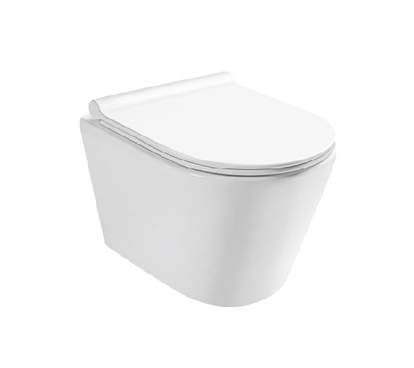 Wall-Mounted Compact Elongated Toilet Bowl With Slow Close Seat