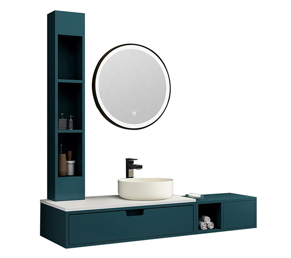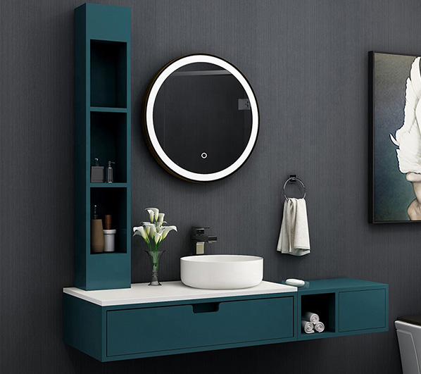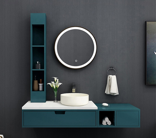 • The overall suspended design with round mirror and washbasin matches the rectangular cabinet, giving your bathroom both elegance and modern style.